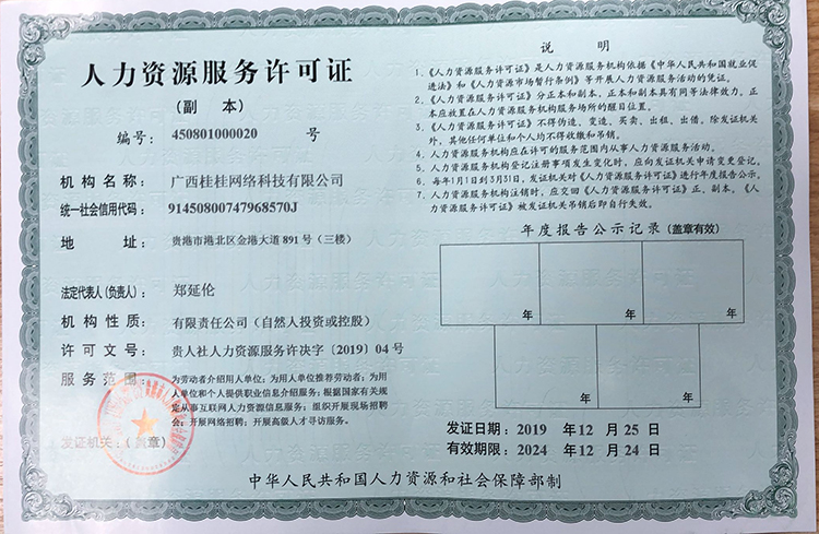 《人力資源服務許可證》是人力資源服務機構依法開展人力資源服務活動的憑證。