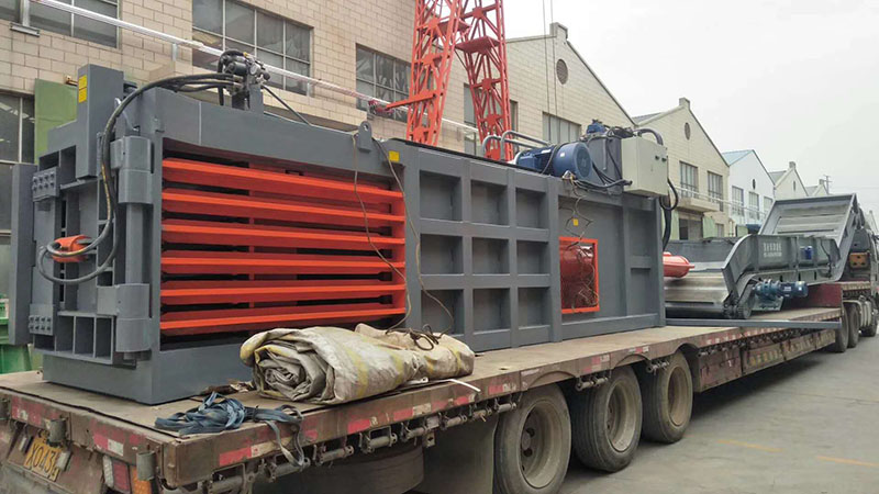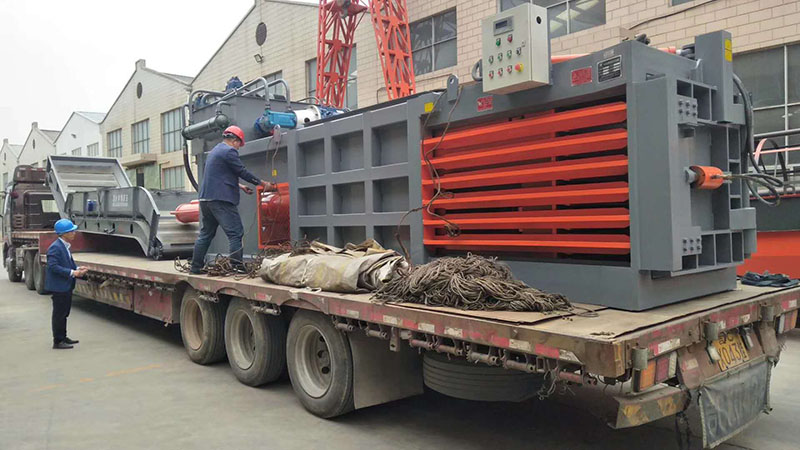 遼寧阜新200噸關(guān)門式打包機(jī)裝車發(fā)貨
